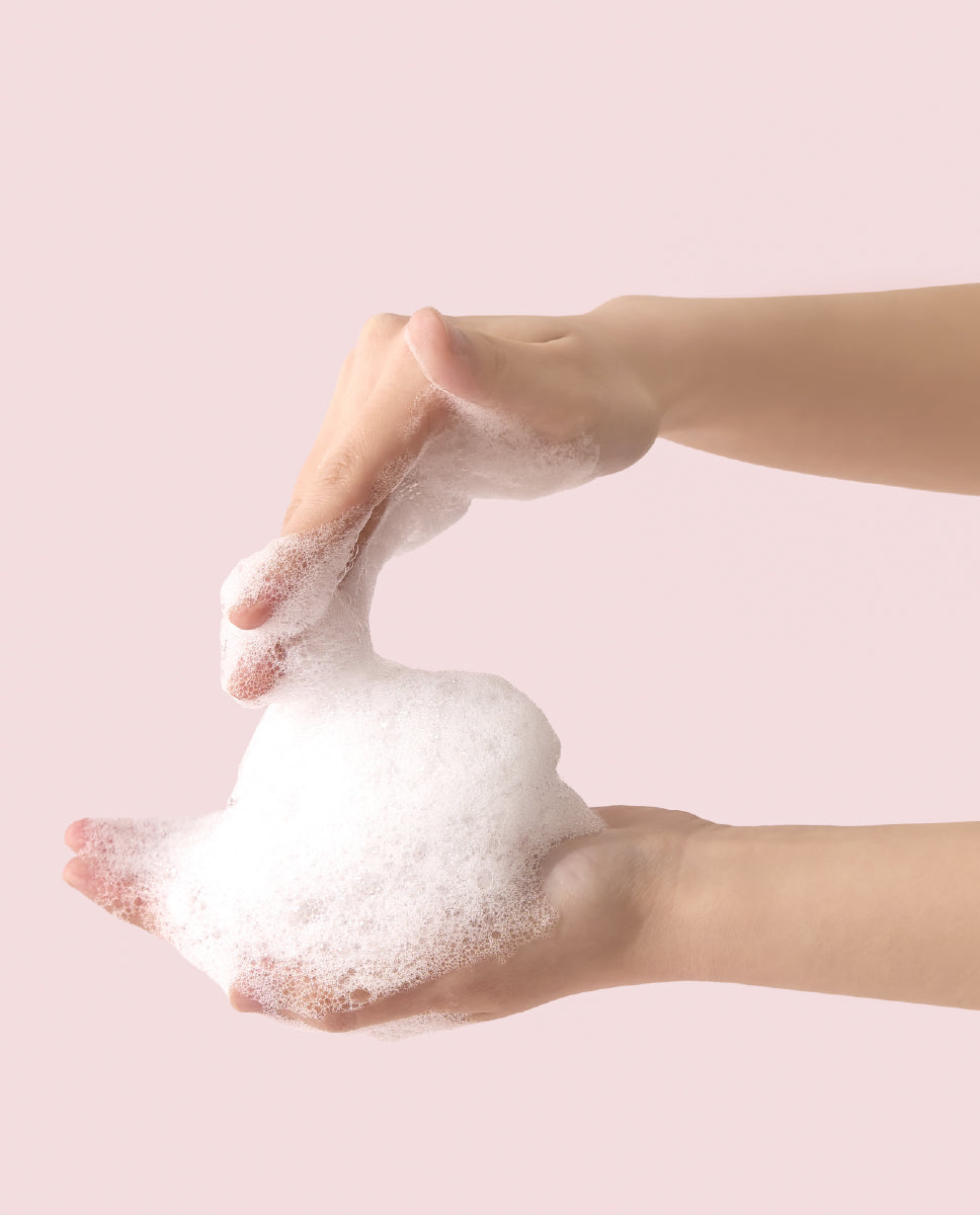 1. Feuchte dein Gesicht mit lauwarmem Wasser an, um die Poren zu öffnen. Gib eine haselnussgroße Menge Waschschaum auf deine feuchten Hände und verreibe es leicht in den Händen, bis es schäumt. Massiere nun den Schaum sanft in kreisenden Bewegungen auf Gesicht und Hals ein, vermeide dabei den direkten Kontakt mit den Augen. Zum Schluss spüle das Gesicht gründlich mit lauwarmem Wasser ab, um alle Rückstände zu entfernen und tupfe das Gesicht vorsichtig mit einem sauberen Handtuch trocken.